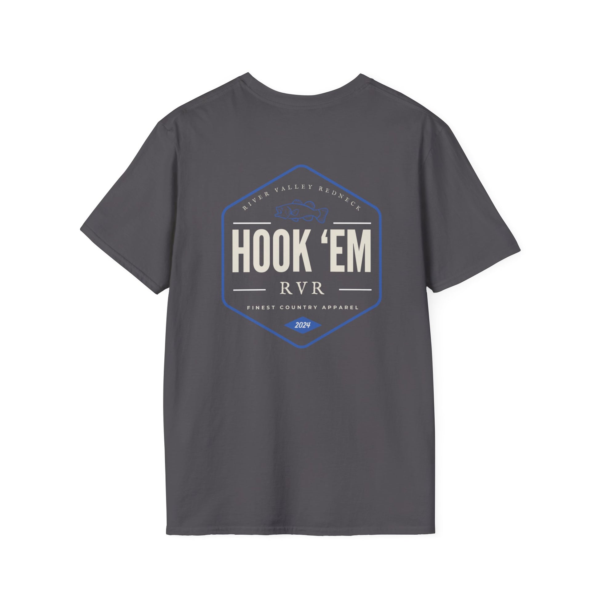 This lightweight, classic-fit tee brings easygoing fishing club style to everyday wear. The front chest sports a subtle angler emblem, while the back features a bold “HOOK ’EM” badge with a vintage boat-and-line motif—clean, confident, and made for long days on the water or evenings swapping stories at the dock. The soft ring-spun cotton feels breathable in warm weather and layers smoothly under a flannel when the breeze picks up. Thoughtful construction—tubular knit, shoulder tape, and a ribbed collar—keeps the silhouette sharp after many wears. For anglers who value comfort, durability, and a look that reads like a well-worn favorite, this tee fits right into weekends on the water and casual gatherings with the crew.